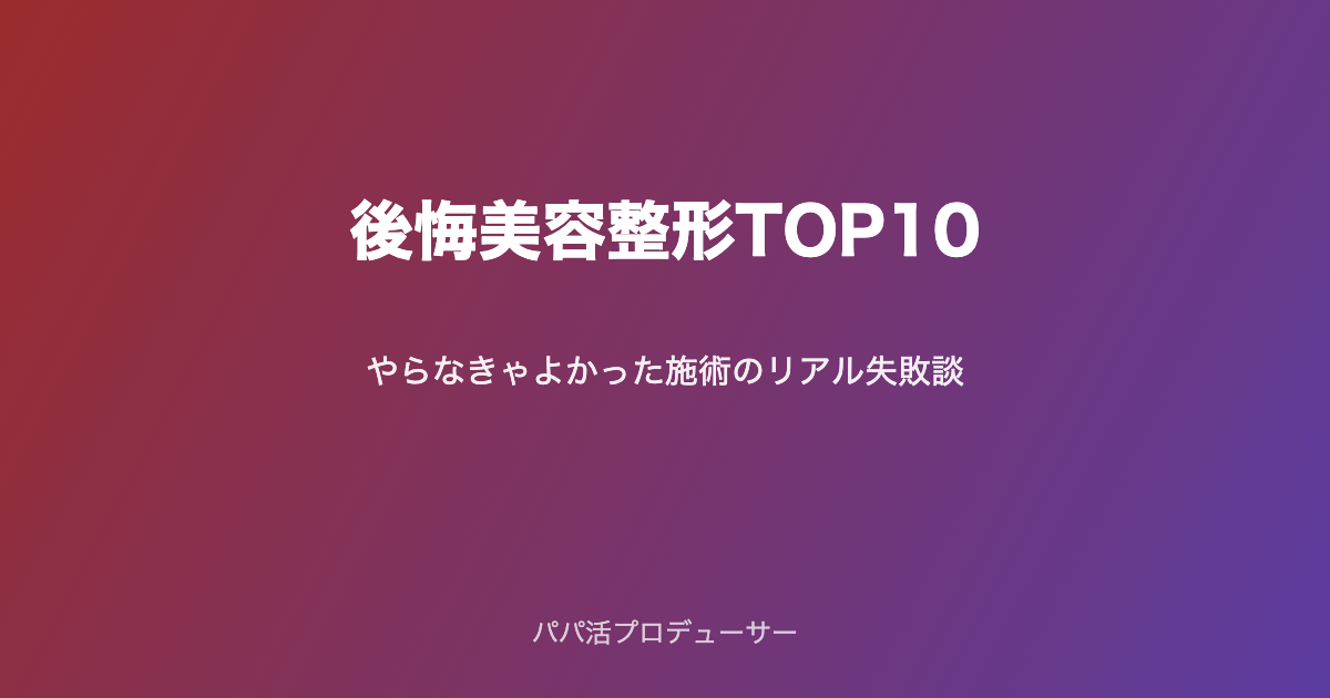本記事では、美容コミュニティ「美女子会」に集う1万人以上のメンバーから集計した「やらなきゃよかった後悔美容整形TOP10」を公開します。実際に受けた人たちの失敗談・修正の実態・費用のロス・心のダメージまで、包み隠さずまとめました。