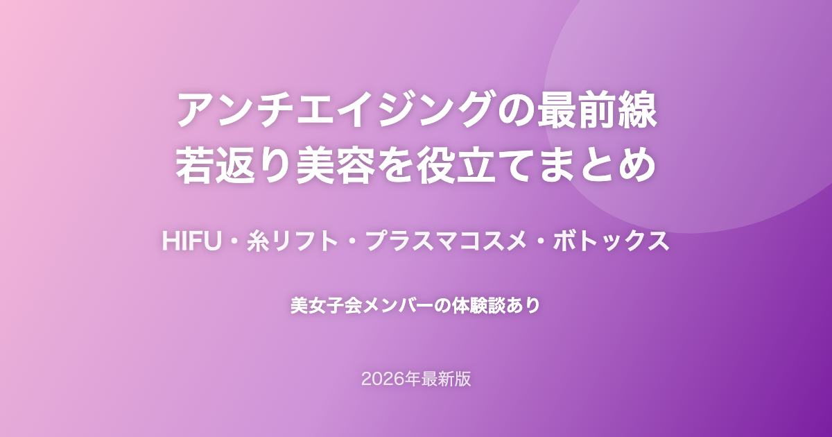 「最近老けた気がする」「たるみ・ハリ感が気になり始めた」——アンチエイジングの悩みは一日でも早く対処したいと思うもの。美女子会のメンバーたちが実際に受けた施術の中で特に人気なのが「HIFU(ハイフ)」「糸リフト」「プラスマコスメ」「ボトックス(リフトアップ)」。この記事では各治療の特徴・效果・費用をメンバーのリアルな声とともに解説します。