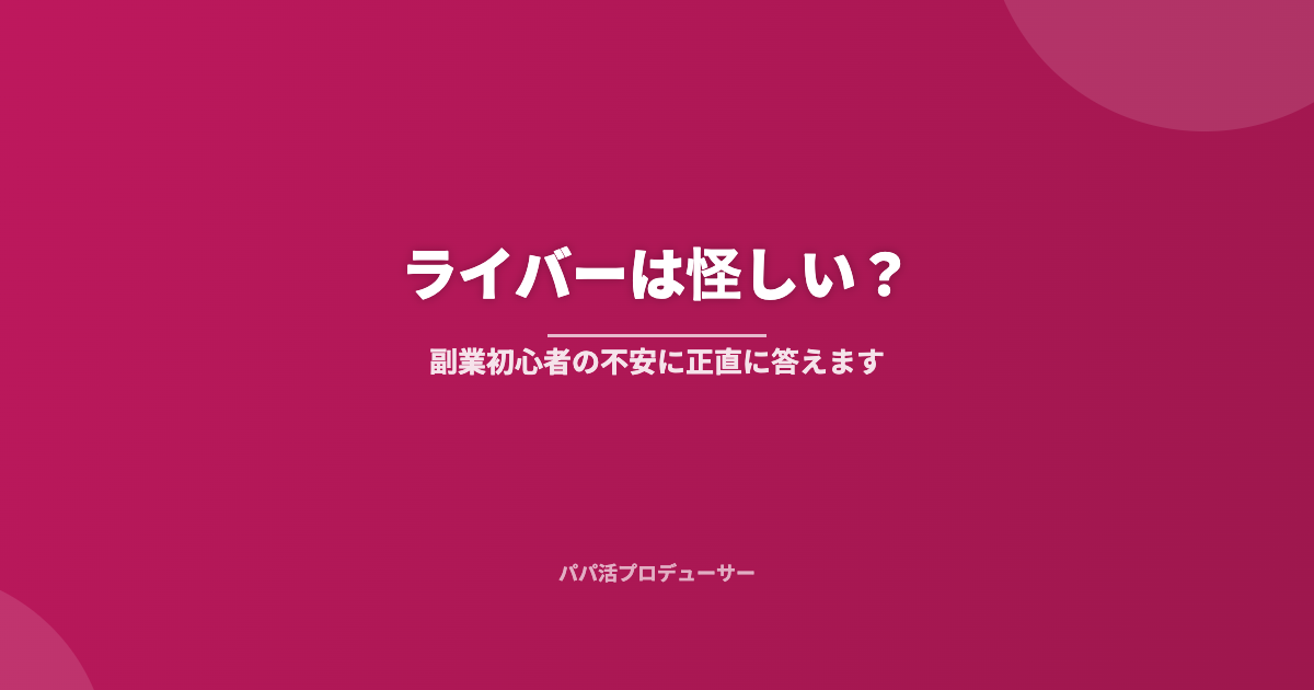 「ライバーって怪しいんじゃないの?」「騙されそう」。副業を探している方からよくこういった声を聞きます。正直な疑問だと思います。