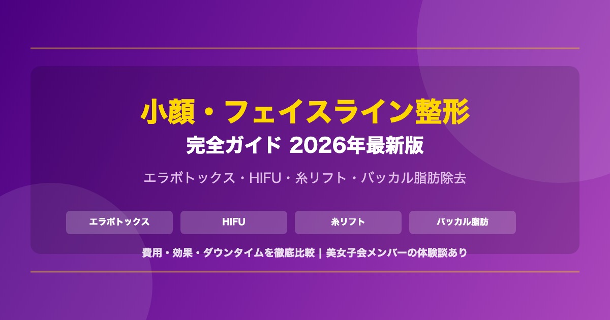 「顔が大きい」「エラが張ってる」「フェイスラインがぼやけてきた」——そんな悩みを抱えている方に向けて、小顔・フェイスライン整形の全メニューを美女子会メンバーのリアルな体験談とともに徹底解説します。