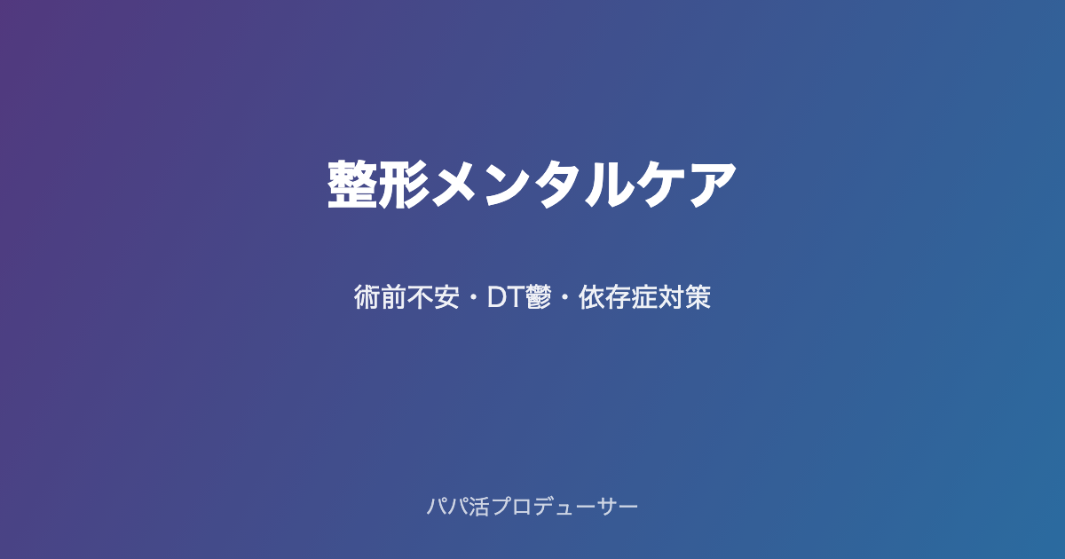 美容整形は顔だけでなく、心も同時にケアすることで真の成功になります。術前不安・DT鬱・整形依存は誰にでも起こり得るので、事前に知って備えましょう。