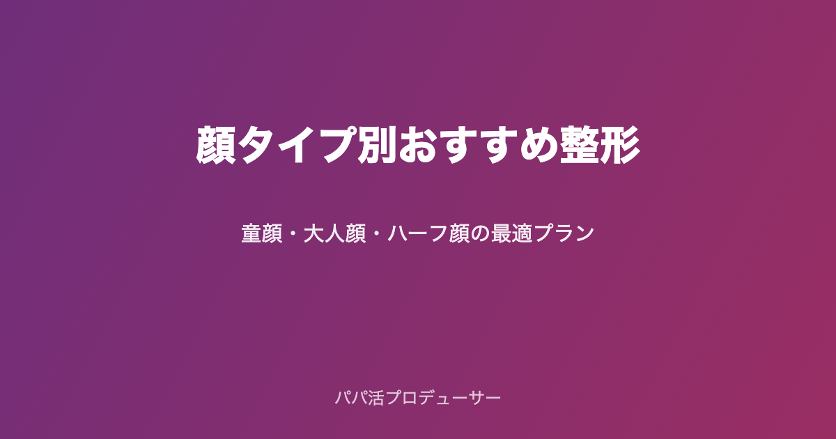 本記事では、童顔・大人顔・ハーフ顔・ナチュラル顔の4大顔タイプ別に、おすすめ整形プランを徹底解説。自分の顔タイプを診断して、似合う整形・似合わない整形を見極めましょう。