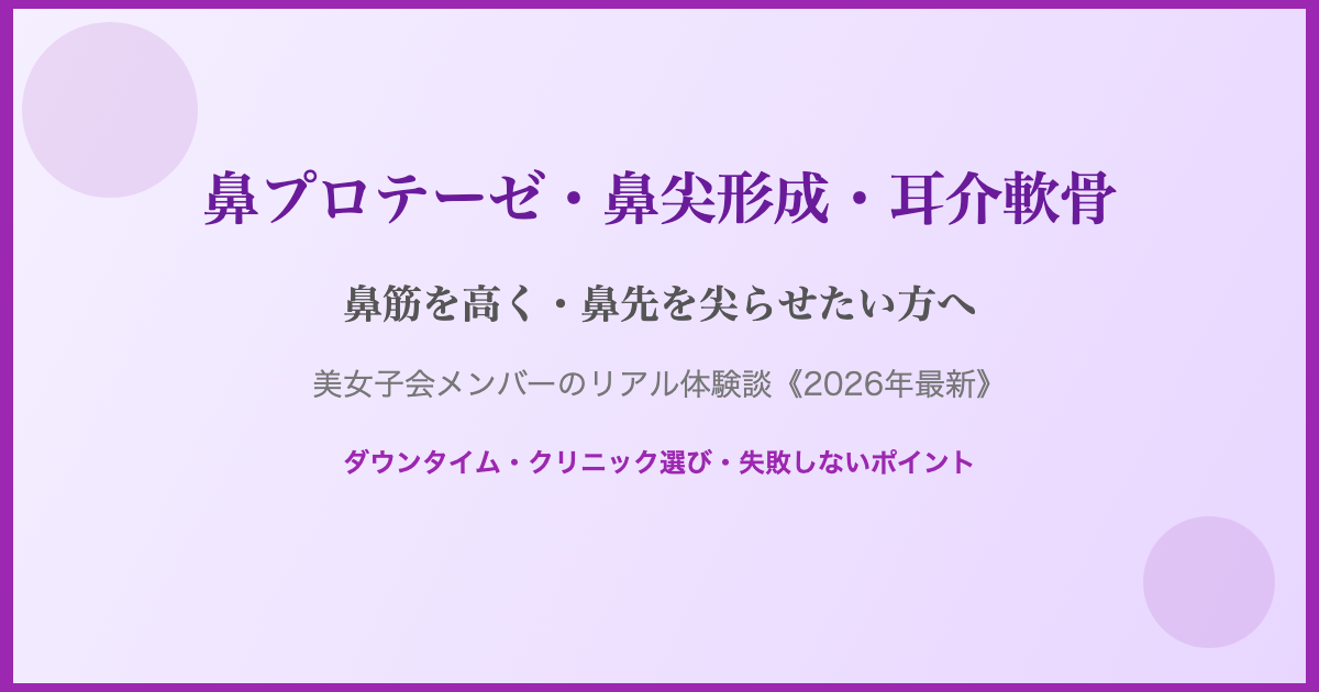 鼻プロテーゼ・鼻尖形成・耳介軟骨は、「鼻筋を高くしたい」「鼻先を尖らせたい」方に人気の鼻整形です。美女子会メンバーのリアルな体験談をもとに、各施術の特徴・ダウンタイム・クリニック選びのポイントを彻底解説します。