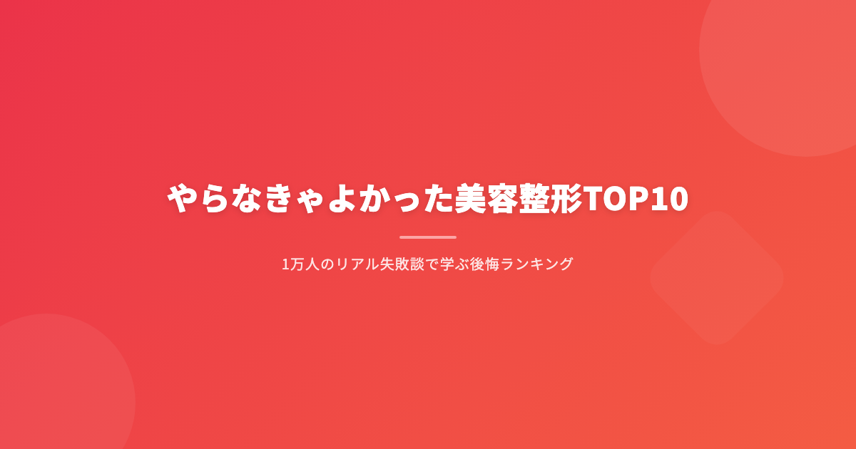 本記事では、美容コミュニティ「美女子会」に集う1万人以上のメンバーから集計した「やらなきゃよかった後悔美容整形TOP10」を公開します。実際に受けた人たちの失敗談・修正の実態・費用のロス・心のダメージまで、包み隠さずまとめました。