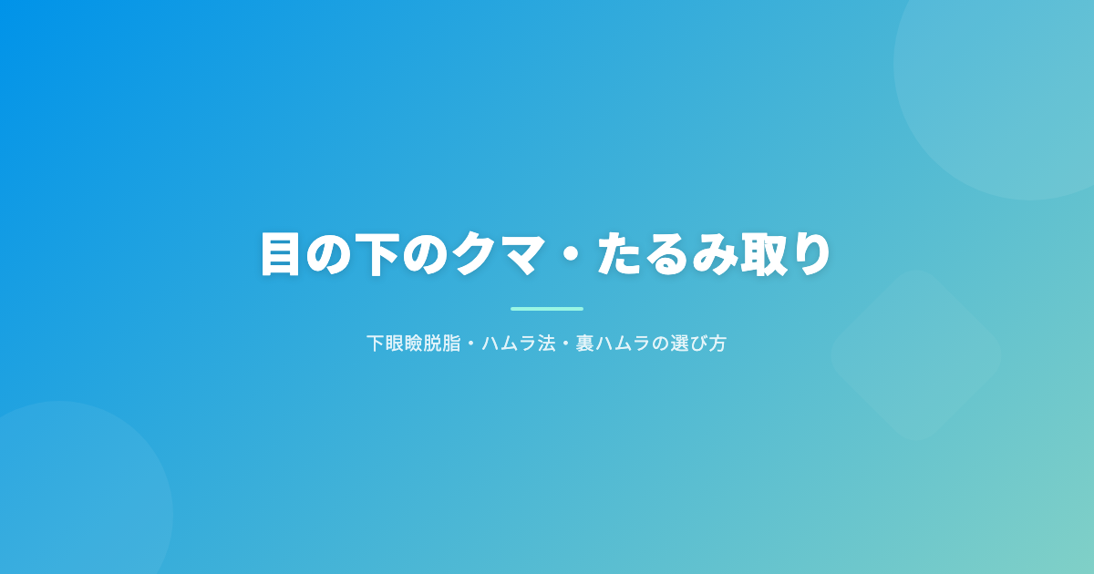 - 黒クマ(脂肪突出)が主:脱脂 / ハムラ / 裏ハムラ