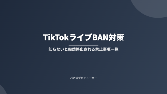 TikTokライバー TikTokライブでBANされないための完全マニュアル|禁止事項と注意点 2026年3月29日 パパ活プロデューサー パパ活プロデューサー TikTokのライブ配信中にいきなり「配信を停止しました」と表示されたことはありませんか?これがいわゆる「BAN(バン)」です。 T …
